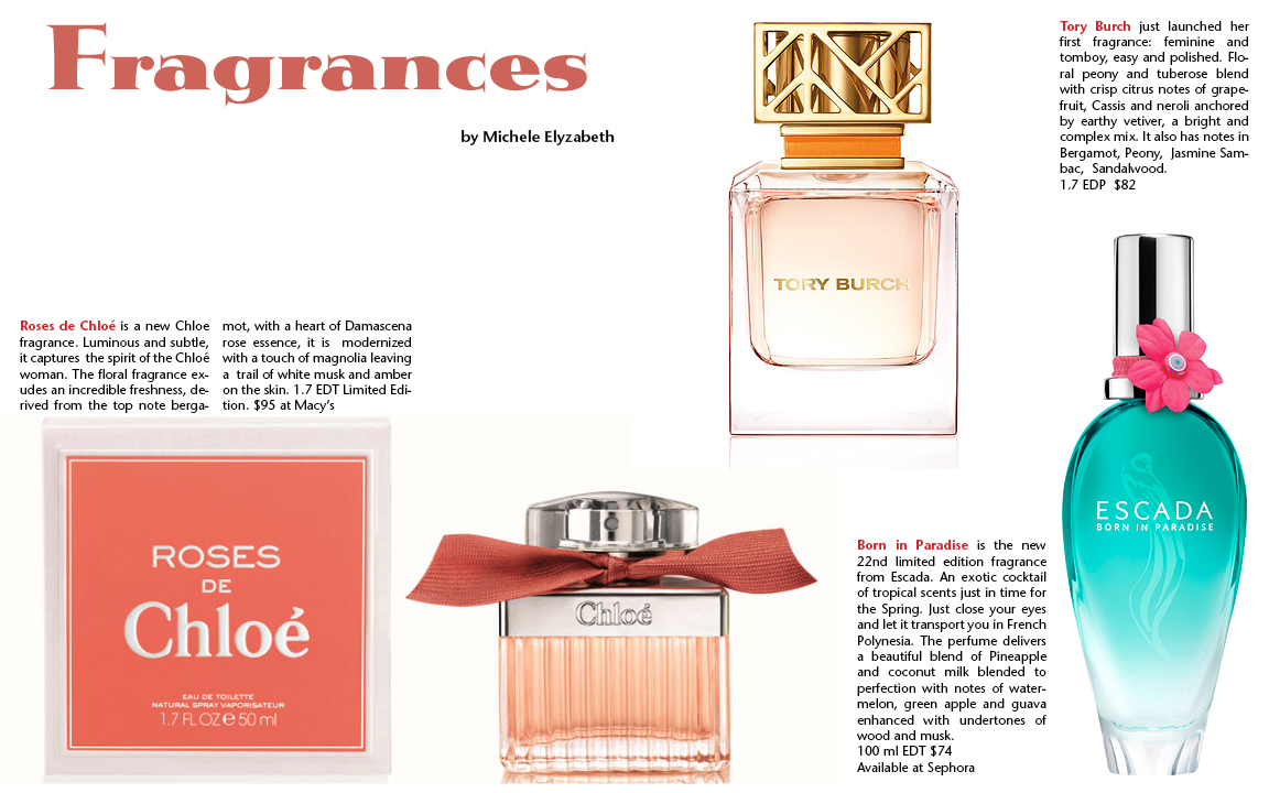 Tory Burch just launched her first fragrance: feminine and tomboy, easy and polished. Floral peony and tuberose blend with crisp citrus notes of grapefruit, Cassis and neroli anchored by earthy vetiver, a bright and complex mix. It also has notes in Bergamot, Peony, Jasmine Sambac, Sandalwood.