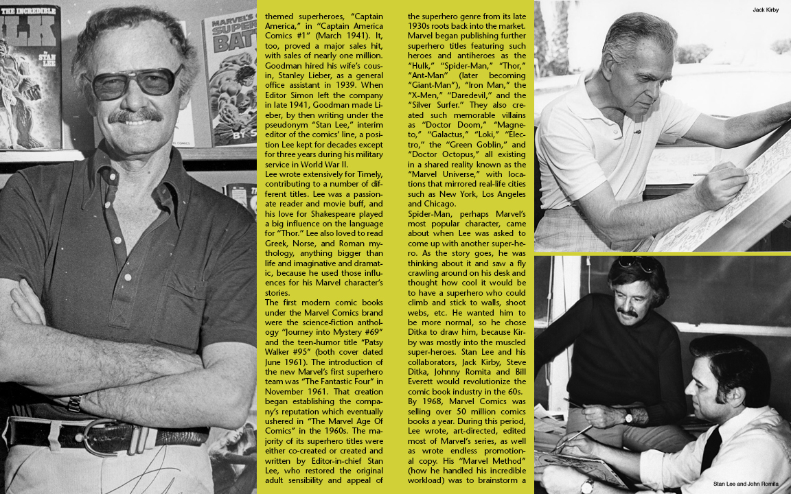 When my Publisher wanted to do a cover story on Stan Lee, who more than I was qualified to do it? I already knew a great deal about the super-heroes in the Marvel galaxy, still in possession of over 700 Marvel Comic titles from the silver age and consider myself quite the comic book aficionado. What I wasn’t as knowledgeable about was the history of Marvel and how it came about, so this would be an opportunity to educate myself on the origins of such an innovative and trendsetting company.