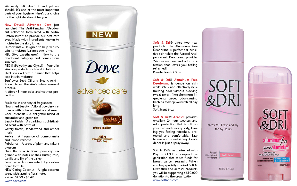 Soft & Dri®offers two new products: The Aluminum Free Deodorant is perfect for sensitive skin while the Aerosol Antiperspirant Deodorant provides 24-hour wetness and odor protection that leaves you feeling refreshed!