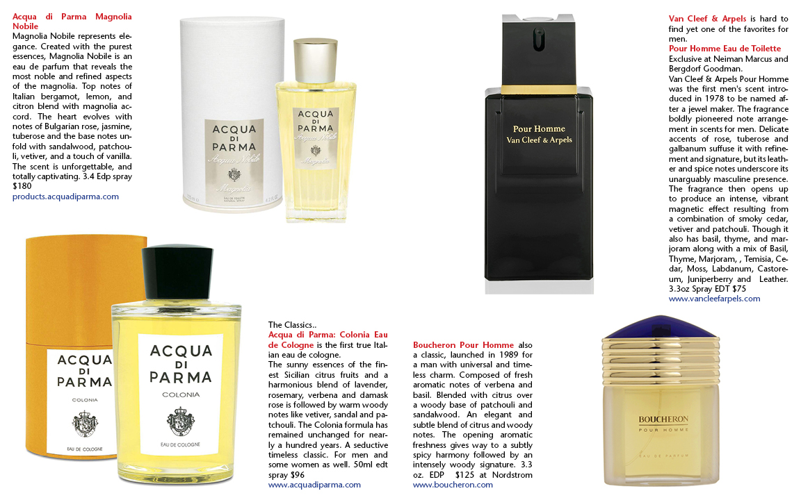 Boucheron Pour Homme also a classic, launched in 1989 for a man with universal and timeless charm. Composed of fresh aromatic notes of verbena and basil. Blended with citrus over a woody base of patchouli and sandalwood. An elegant and subtle blend of citrus and woody notes. The opening aromatic freshness gives way to a subtly spicy harmony followed by an intensely woody signature. 3.3 oz. EDP $125 at Nordstrom www.boucheron.com
