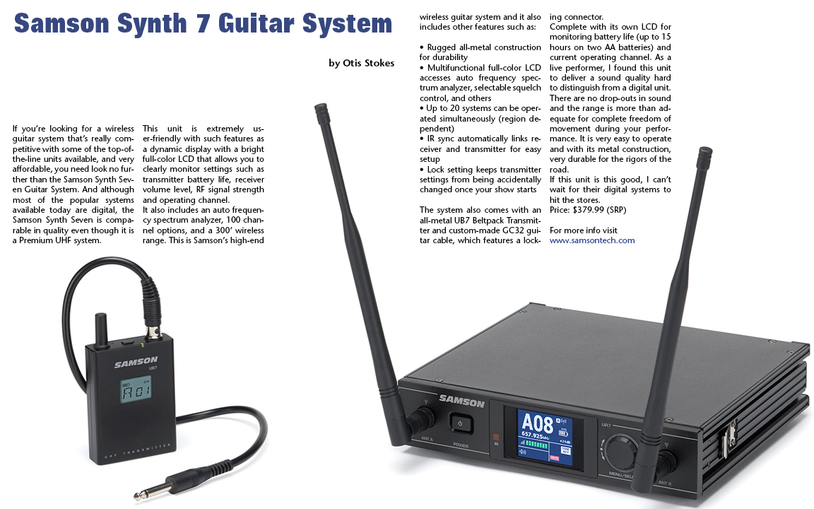 If you’re looking for a wireless guitar system that’s really competitive with some of the top-of-the-line units available, and very affordable, you need look no further than the Samson Synth Seven Guitar System. And although most of the popular systems available today are digital, the Samson Synth Seven is comparable in quality even though it is a Premium UHF system.